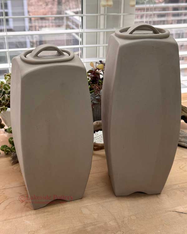 Clay: The clay should be at the leather-hard stage, firm enough to hold its shape under light pressure but not so dry that it cracks or resists carving. This stage provides the best surface for clean, sharp lines and prevents accidental gouging or smudging.